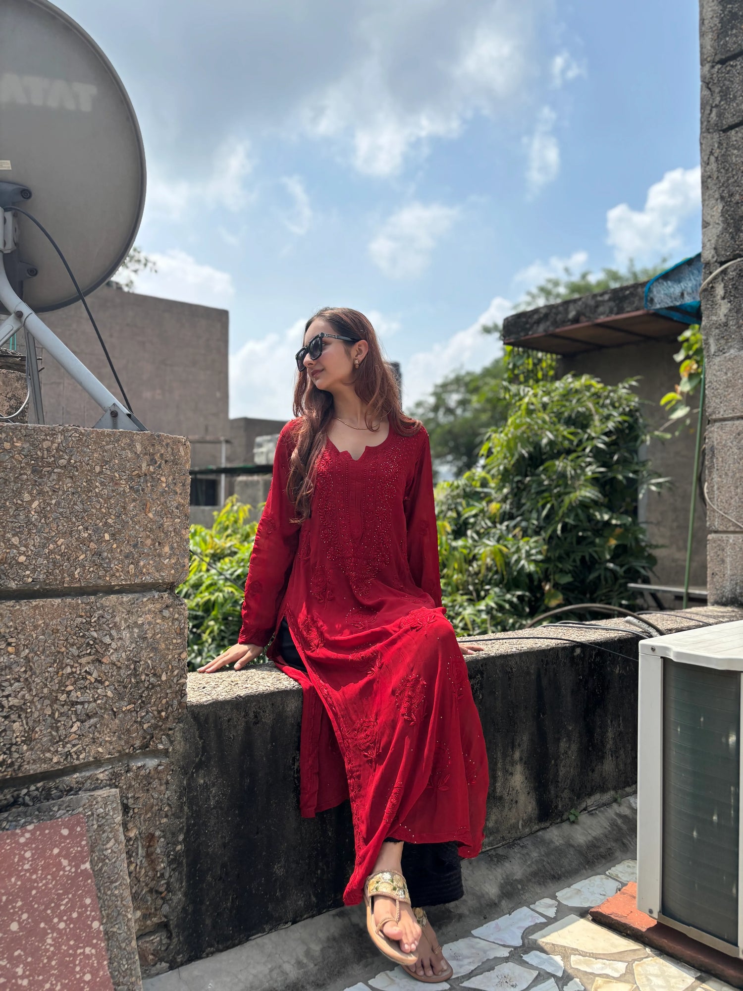 Shiffon Long Kurti-Chikenkari with Mukesh work