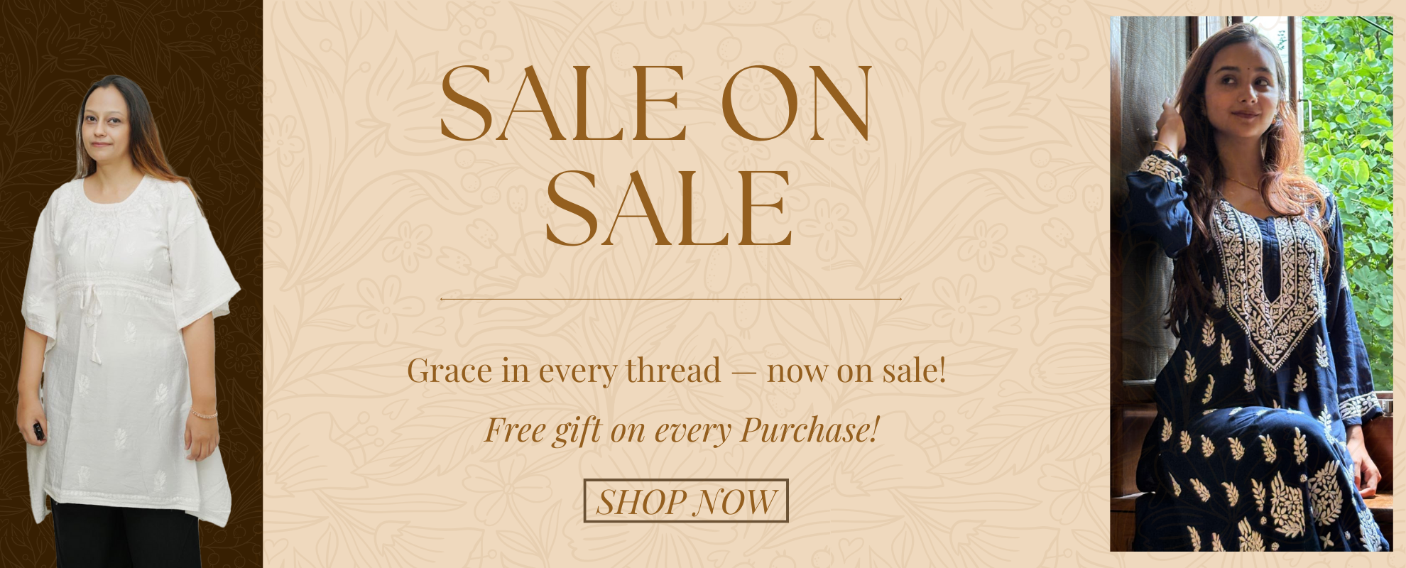 Each piece is handmade by skilled women artisans from their homes. Inspired by our founder’s grandmother, what began in a small courtyard is now a mission to keep Chikankari alive and meaningful.