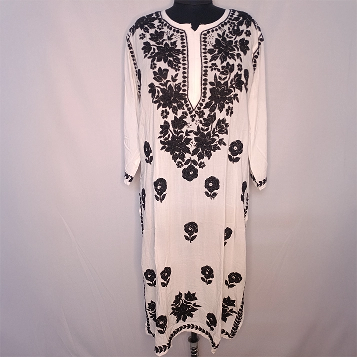 This elegant 3D Modal Kurti is made with premium modal fabric for a soft and comfortable feel. Designed in white with black embroidery, it adds a stylish touch to your wardrobe.