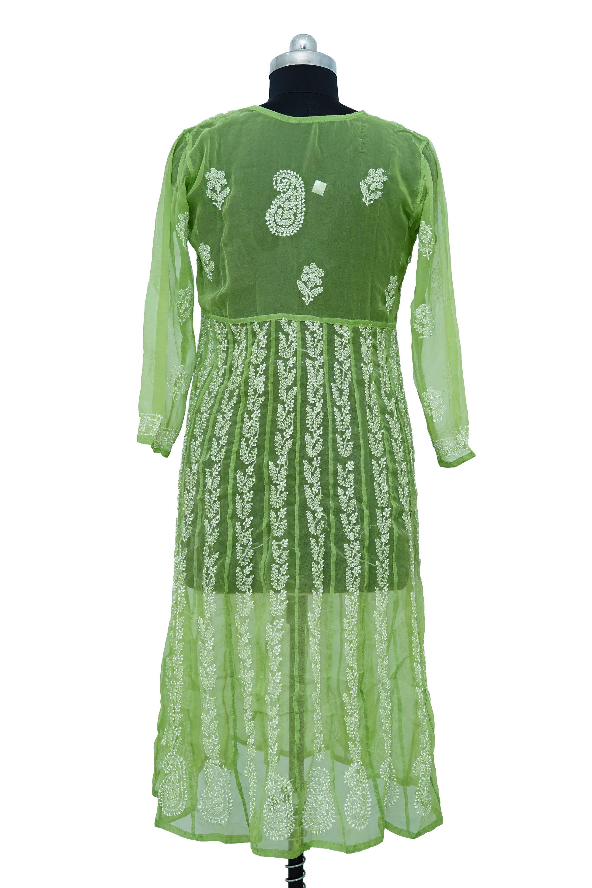Elevate your ethnic ensemble with this sophisticated green georgette anarkali, distinguished by its delicate jaal chickenkari embroidery. Crafted from premium georgette fabric, this piece seamlessly transitions from formal occasions to evening gatherings. The expert tailoring and refined detailing ensure a polished, graceful silhouette that enhances any wardrobe with timeless sophistication.