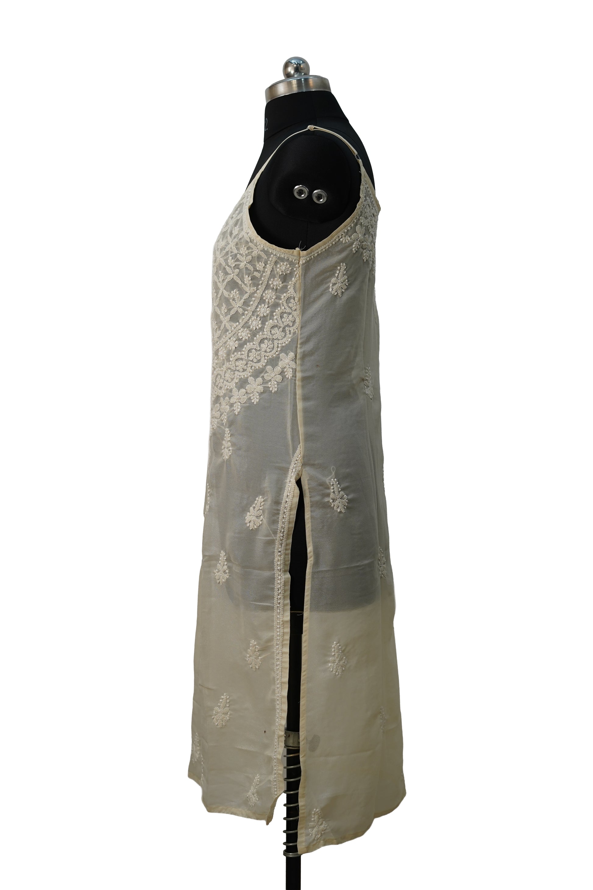 Expertly crafted and designed for elegant parties, our Golden Shimmer strappy kurti boasts a beautiful golden shimmer and intricate chickenkari detailing. With its delicate strappy design, it exudes sophistication and style. Perfect for any special occasion, this kurti will make you feel confident and glamorous.