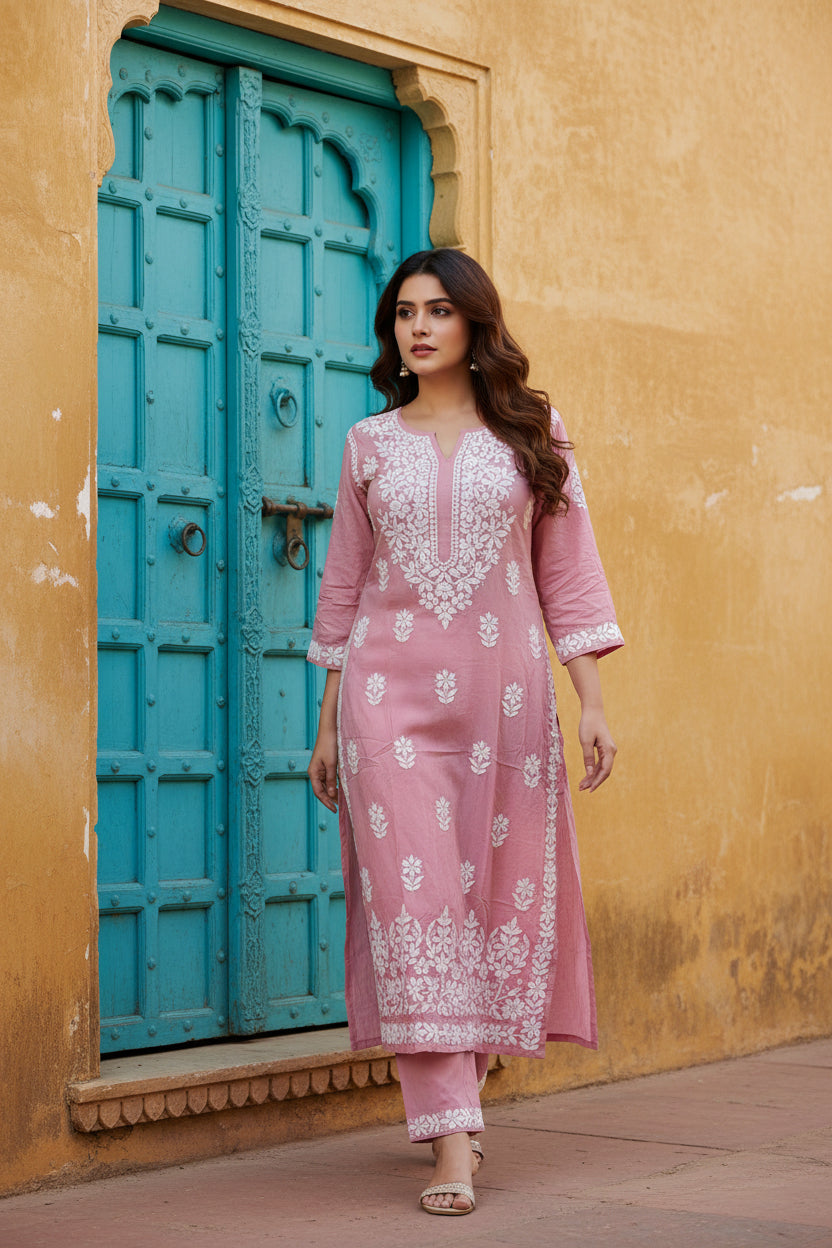 Discover the elegance and intricacy of our Modal 3D Chikenkari Kurti. Made with soft modal fabric and adorned with beautiful 3D chikenkari work, this kurti is a perfect blend of style and comfort. Elevate your wardrobe with this stunning Onion Pink piece.