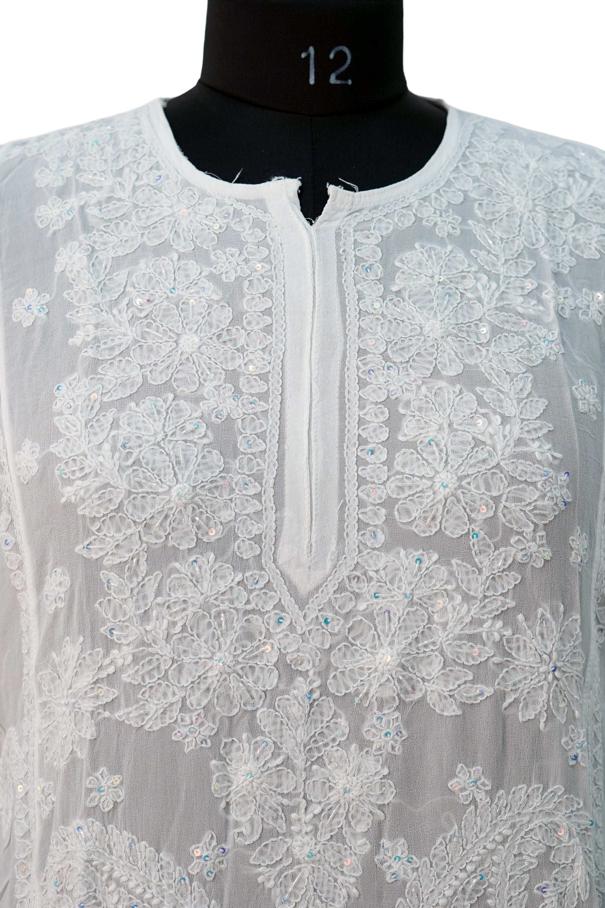 Pure Shiffon Jaal with sequence-White Kurti