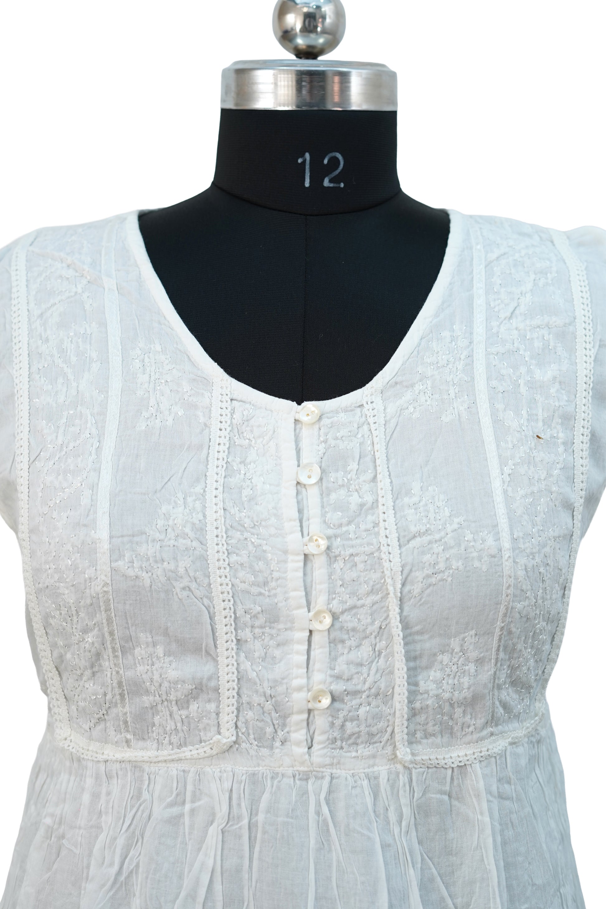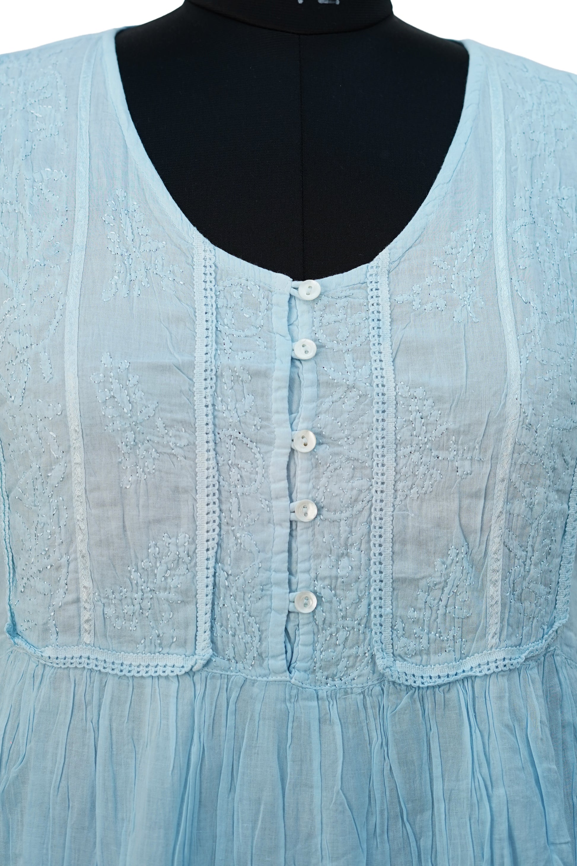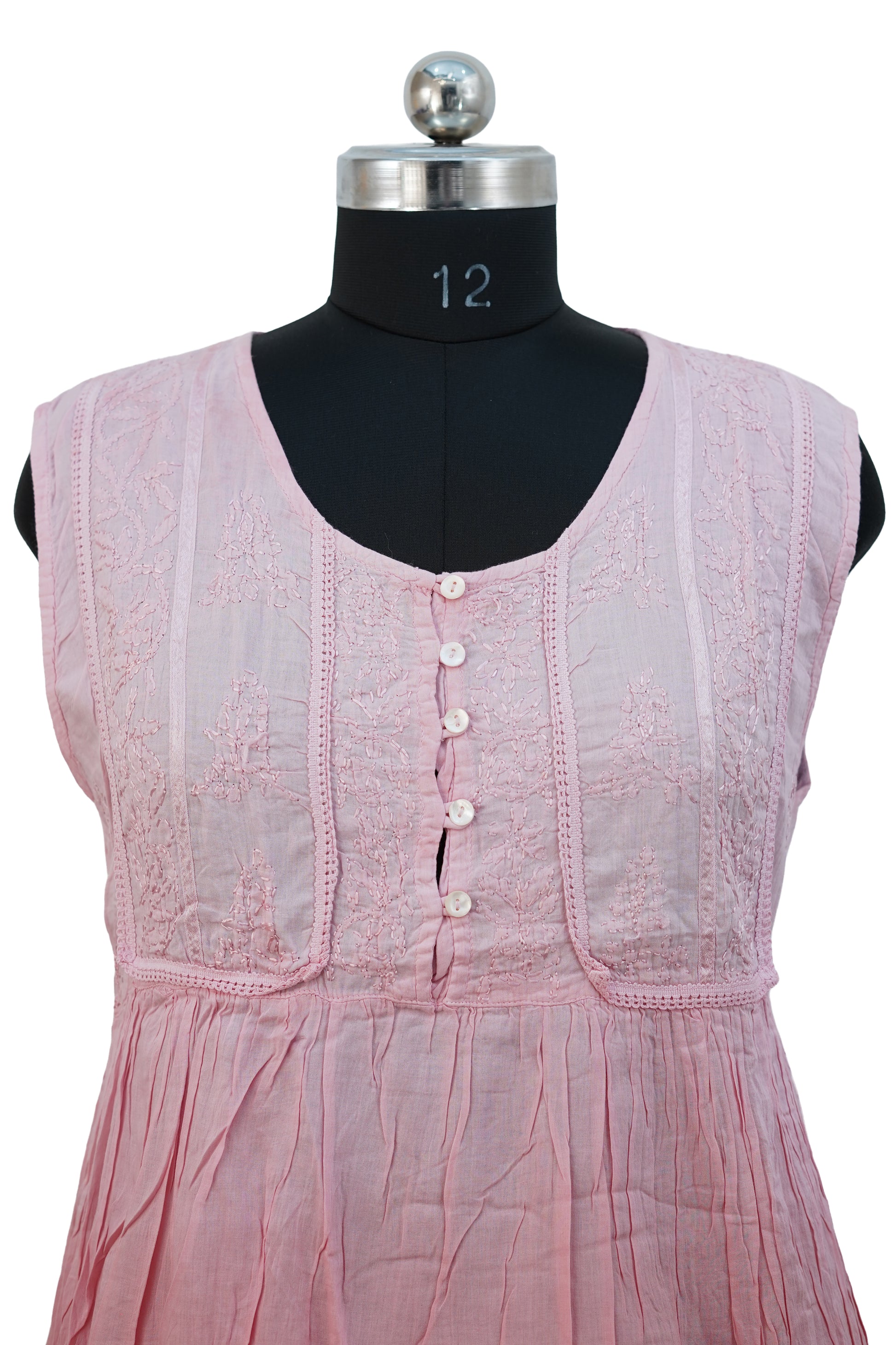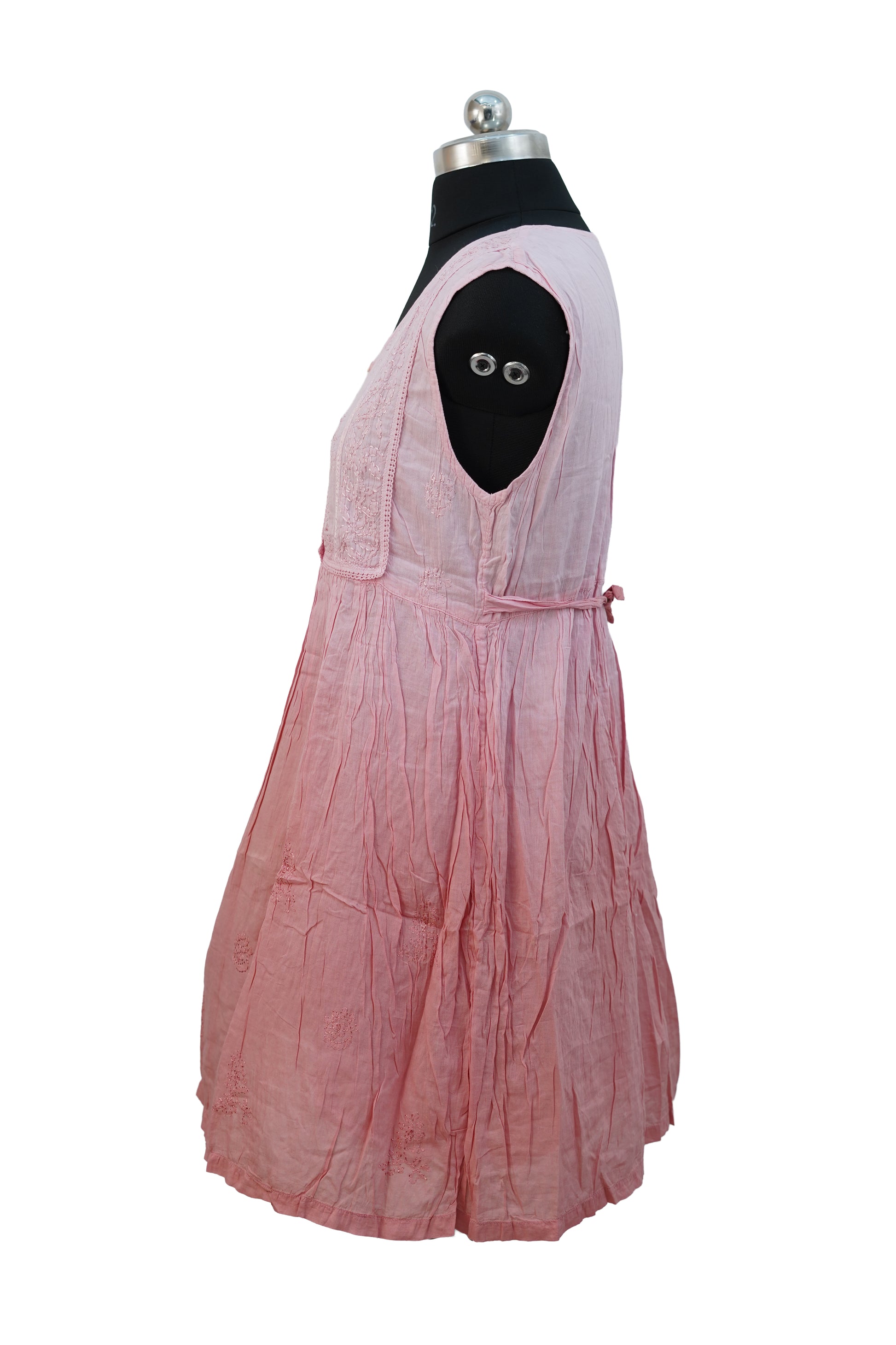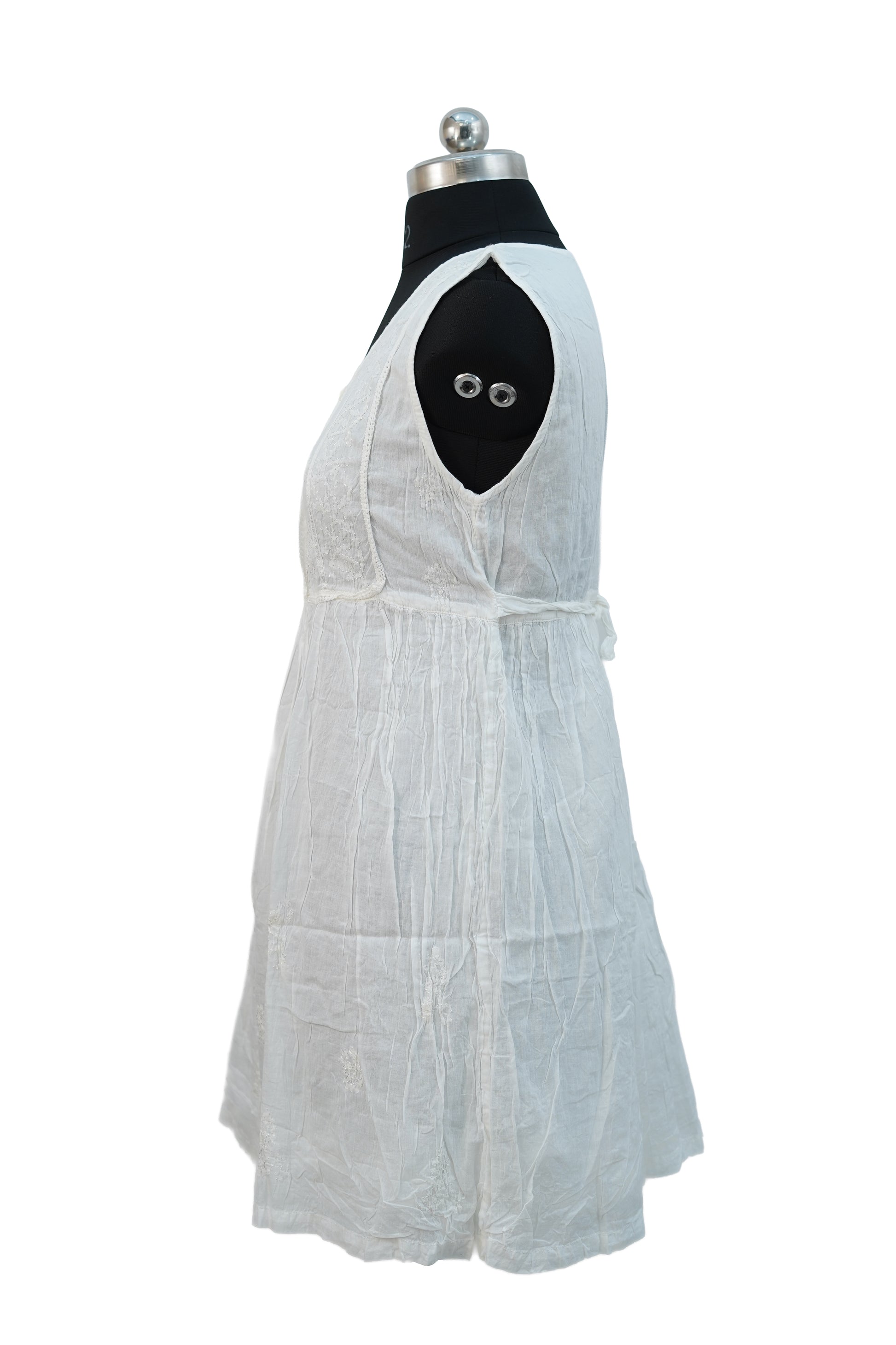 Introducing our Sleeveless Short Dress, crafted from high-quality mul cotton fabric with intricate chickenkari embroidery. The sleeveless design and back belt add a touch of elegance to this dress, making it perfect for any special occasion. Made with comfort and style in mind, this dress is a must-have for any wardrobe.